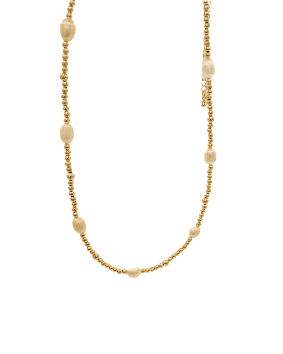 Collar de acero inoxidable bañado en oro de 18K con perlas de agua dulce.